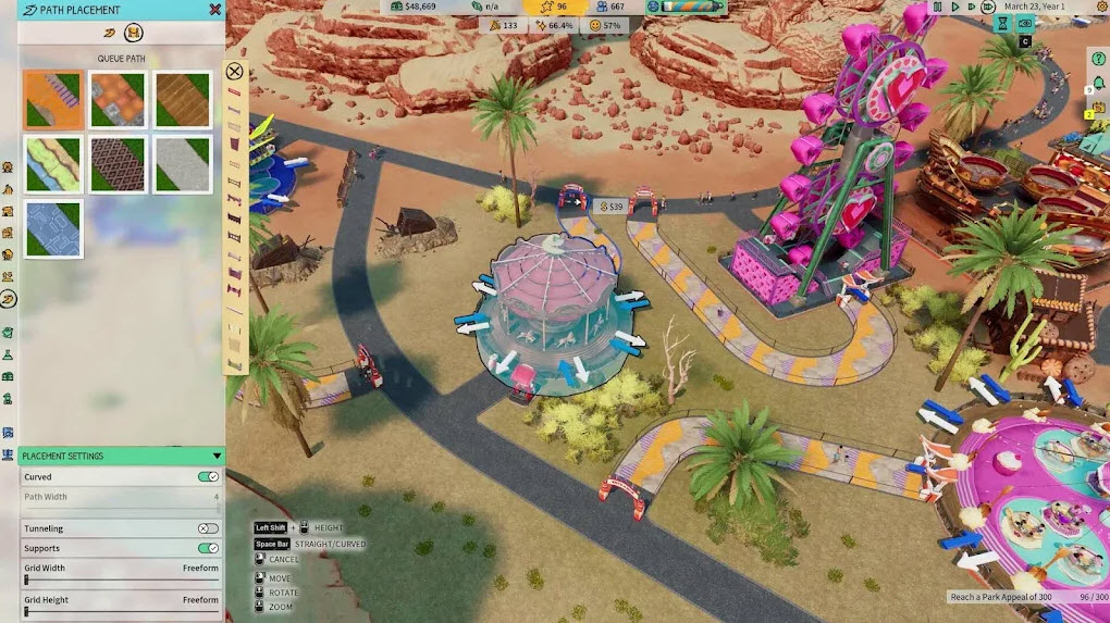 1. 自由度極高:玩家可以自由設計和建設自己的公園,沒有固定的模式和規則。