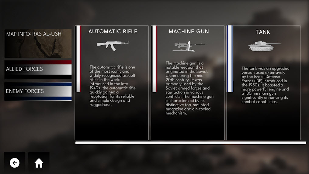 1.精美的畫(huà)面和真實(shí)的音效,讓你仿佛置身于戰(zhàn)場(chǎng)之中。