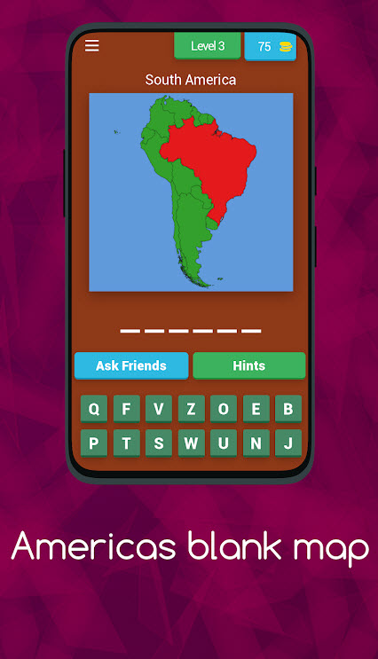 美洲空白地圖是一款有趣的手機游戲,玩家需要回答關(guān)于美洲地理的瑣事問題,通過正確回答問題來填充地圖上的空白區(qū)域。游戲簡單易上手,適合所有年齡段的玩家。