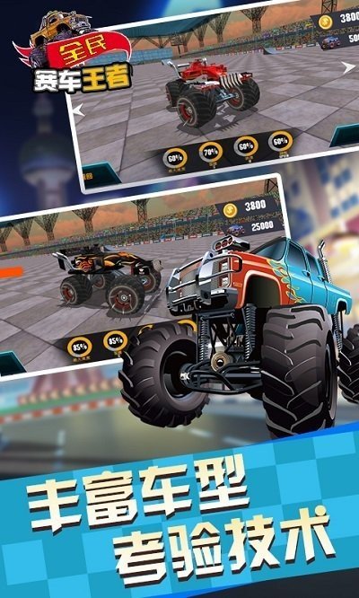 全民賽車王者手游為賽車游戲愛好者通過豐富的車輛賽道選擇、3D地圖、技能升級、