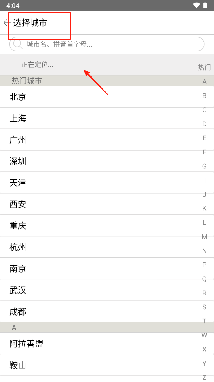 1、選擇城市:點(diǎn)擊“選擇城市”按鈕,選擇你需要查找的城市列表。