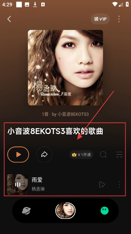 2、進入【雨愛】播放頁后,找到左側心形圖標,點擊它,就能把這首歌加入喜歡啦。