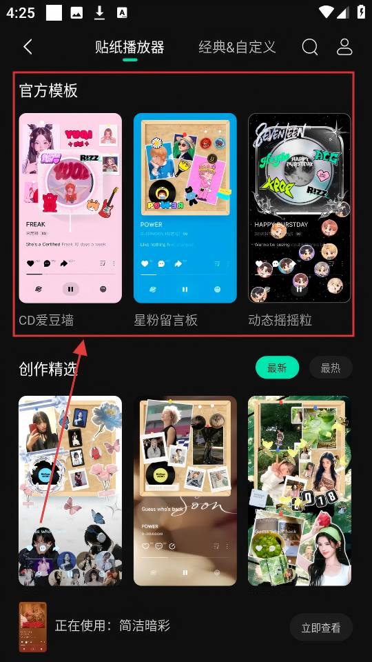 3、在樣式選擇頁面,有【CD愛豆墻】等官方模板,挑選喜歡的樣式,準(zhǔn)備應(yīng)用。