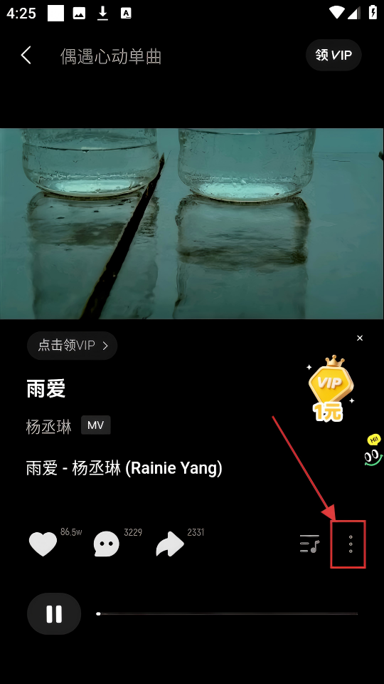 1、在【雨愛】播放頁面,點(diǎn)擊右側(cè)三個(gè)點(diǎn)圖標(biāo),能打開更多操作選項(xiàng),快去試試。