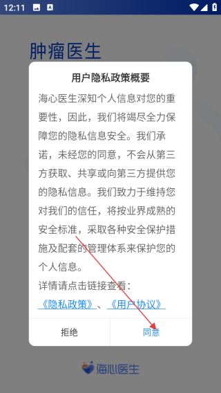 1、打開應用查看用戶隱私政策概要點擊同意。