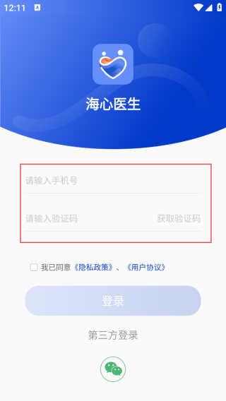 2、進入登錄界面輸入手機號和驗證碼。